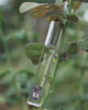 Its complex scent is in accord with the crystals we use as a roller applicator and infused with the oil. Amethyst crystal is known for mood and respiration support & focus.
